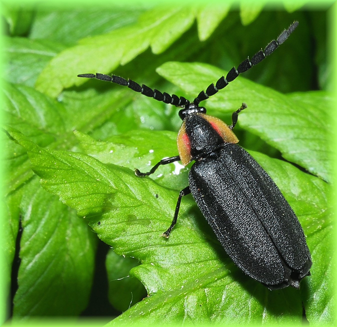Mr. Lightning Bug waiving Hello on the Fern Plant… Photo by Thomas Peace c. 2020